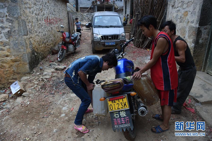 在廣西大化瑤族自治縣板升鄉(xiāng)弄勇村弄朝屯,村民到鄰村運(yùn)水飲用(2015年2月28日攝)。如今,弄朝屯幾乎家家戶(hù)戶(hù)都修建了家庭水柜。新華社記者黃孝邦攝