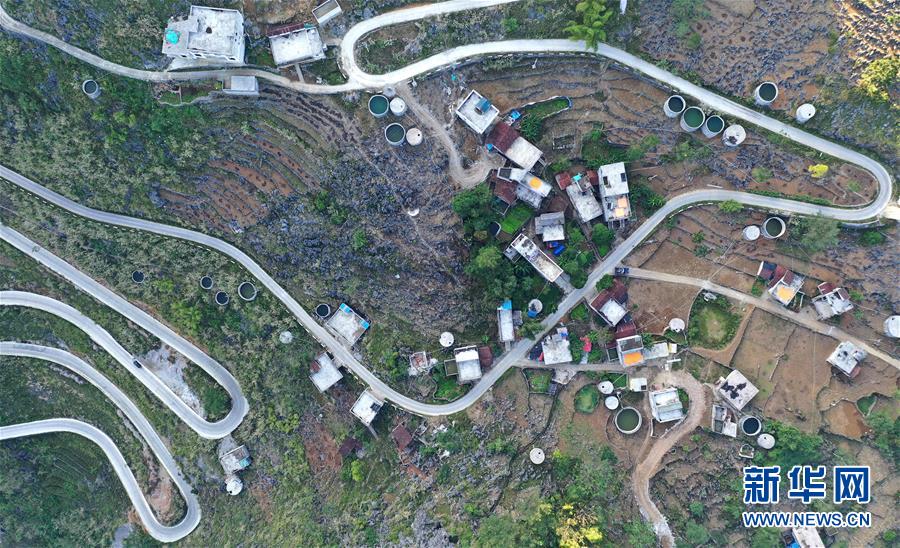 廣西大化瑤族自治縣百馬鄉(xiāng)百馬村群眾的家庭水柜分布在房前屋后(11月14日無人機(jī)拍攝)。新華社記者黃孝邦攝