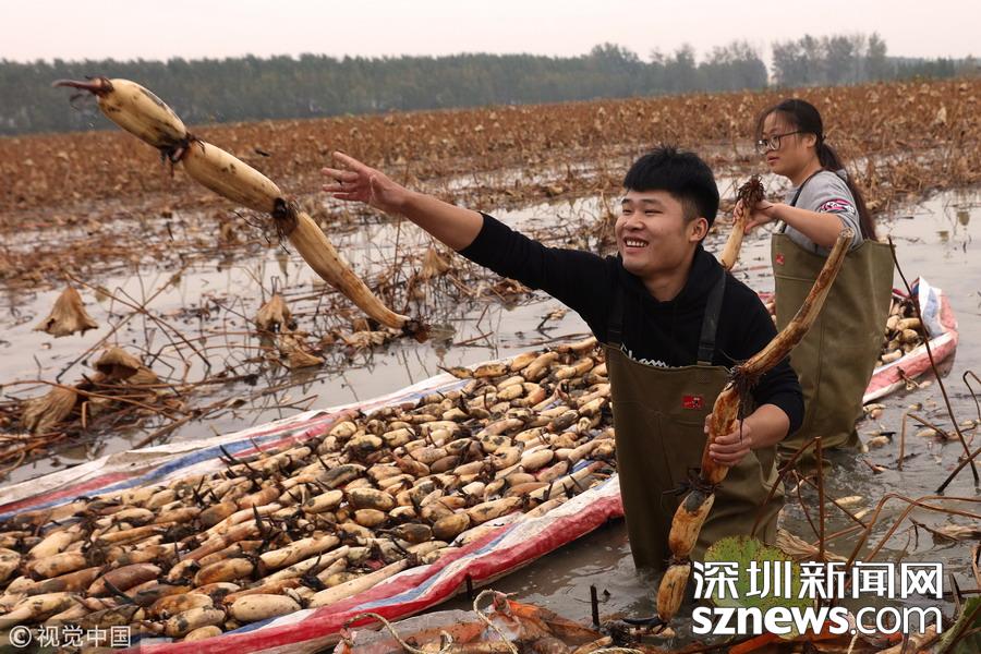 藕農泥中“掘金”初秋時節(jié)采藕忙