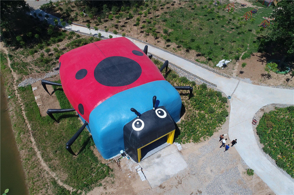 2017年7月23日,湖北省襄陽市,在一處鄉(xiāng)村農(nóng)家樂景點內(nèi),一座七星瓢蟲造型的公廁非常吸引眼球。供圖/視覺中國