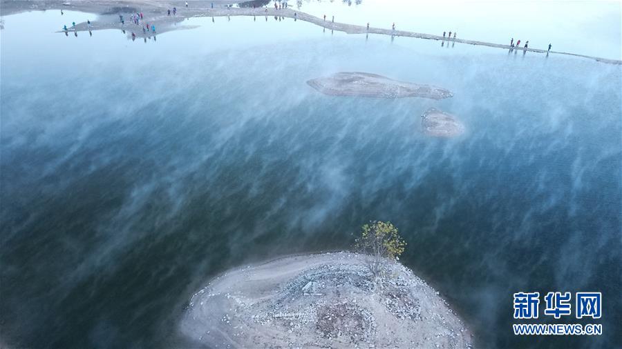 這是11月14日無人機(jī)拍攝的安徽黟縣奇墅湖晨景。新華社記者張端攝