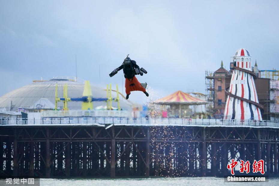 11月18日訊,英國布萊頓,英國發(fā)明家理查德·布朗寧穿著一套由身體控制、噴氣發(fā)動機驅(qū)動、風(fēng)力導(dǎo)向的飛行服,以高達(dá)每小時85.06英里(約137公里)的飛行速度,打破了自己創(chuàng)下的噴氣式飛行服速度的吉尼斯世界紀(jì)錄。圖片來源:視覺中國