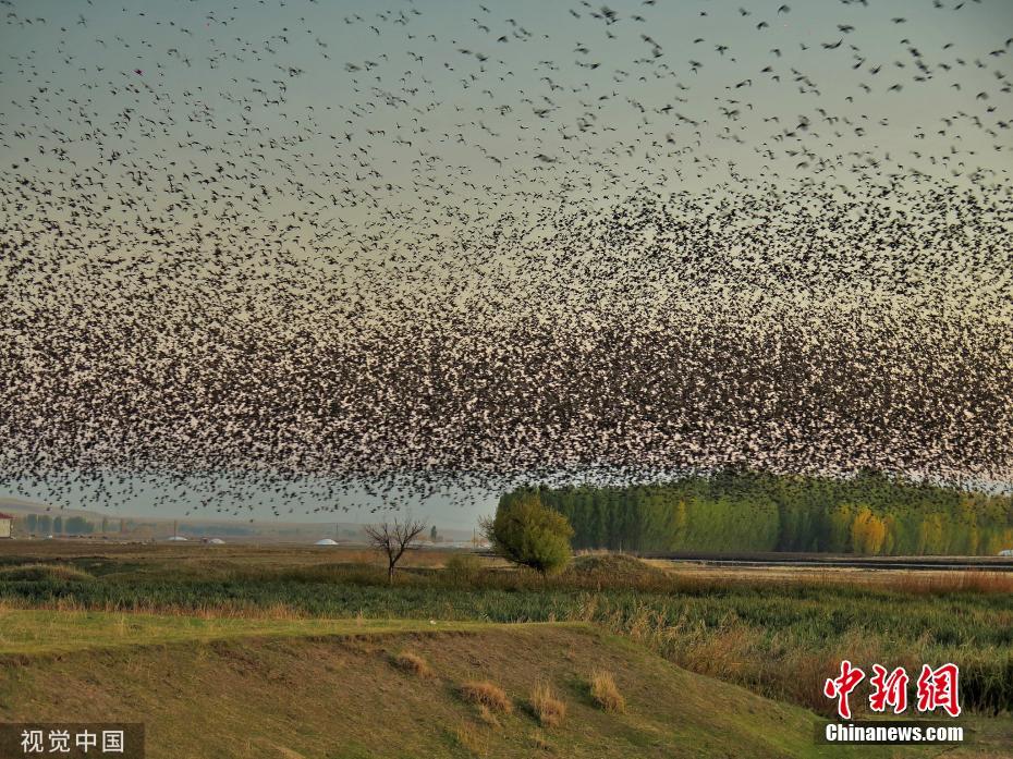 近日,土耳其穆什,椋鳥群遷徙途中,黑壓壓一片遮擋天空。圖片來源:視覺中國