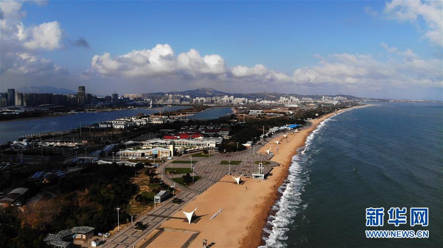 11月22日無(wú)人機(jī)拍攝的日照市萬(wàn)平口海濱風(fēng)景區(qū)。山東省日照市萬(wàn)平口海濱風(fēng)景區(qū)是當(dāng)?shù)芈糜蔚囊粡垺懊保摼皡^(qū)憑借優(yōu)美的海灘、良好的水質(zhì)吸引了不少游客。新華社記者王凱攝