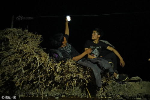 2019年11月16日,四川涼山,村里的年輕人一起交流購(gòu)物經(jīng)驗(yàn)。