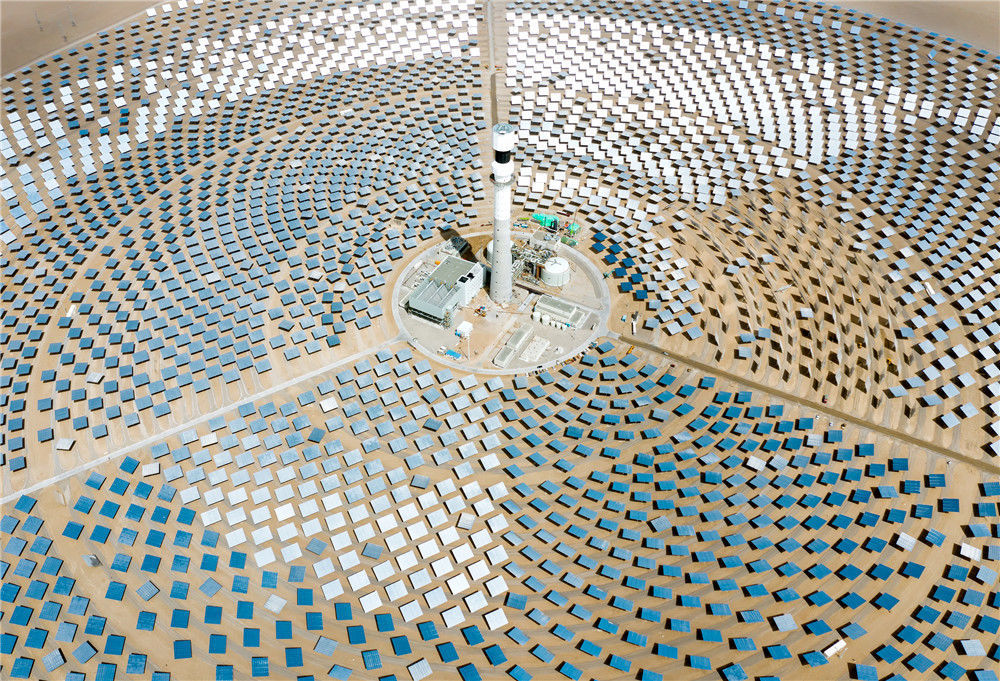 2019年8月31日,青海海西,航拍格爾木光熱發(fā)電裝置。