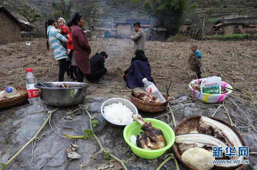11月24日,在昭覺縣支爾莫鄉(xiāng)阿土列爾村,當(dāng)?shù)鼐用駵?zhǔn)備熟食、酒等食物祭祖,并相互贈送。11月20日至26日是四川省涼山彝族自治州大小涼山彝族群眾傳統(tǒng)節(jié)日——彝族年,懸崖上的阿土列爾村的彝族群眾殺年豬、祭祀和走親拜年,慶祝一年一度的彝族年。阿土列爾村是“懸崖村”,位于四川省涼山彝族自治州昭覺縣支爾莫鄉(xiāng),坐落在海拔1400-1600米山坳中,這里居住著60多戶彝族群眾,村民走出大山,需要攀爬懸崖。新華社記者江宏景攝