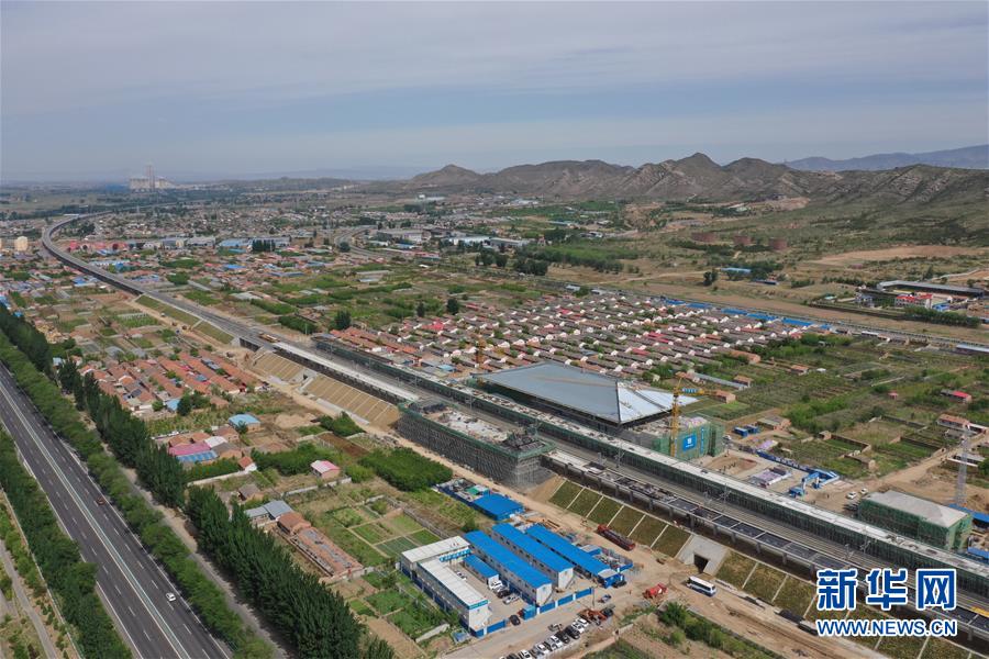 建設(shè)中的宣化北站(5月30日無人機拍攝)。京張高鐵宣化北站位于河北省張家口市宣化區(qū)北盆兒窯村附近,京張高鐵線路北側(cè),目前該站已完成站房主體結(jié)構(gòu)、鋼結(jié)構(gòu)、金屬屋面、清水混凝土雨棚結(jié)構(gòu)等施工內(nèi)容,全面進入裝飾裝修施工階段。新華社記者邢廣利攝