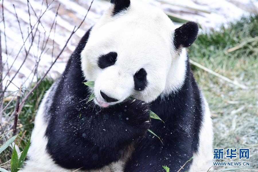 11月29日,在西寧熊貓館內(nèi),一只大熊貓?jiān)诔灾褡印? 新華社記者 吳剛 攝