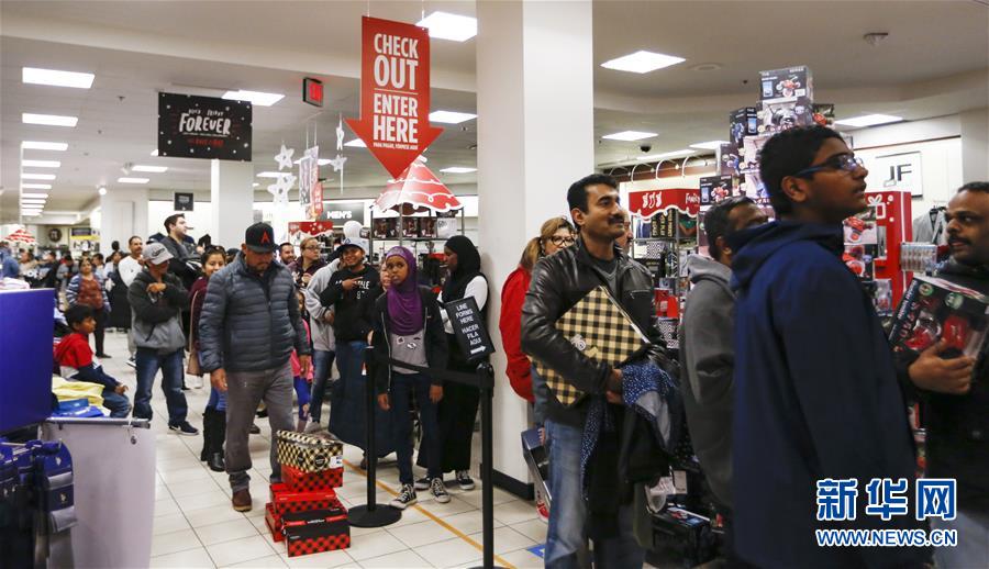 11月28日,人們?cè)诿绹永D醽喼菔グ材鹊囊患疑虉?chǎng)內(nèi)選購“黑五”促銷商品。新華社記者李穎攝