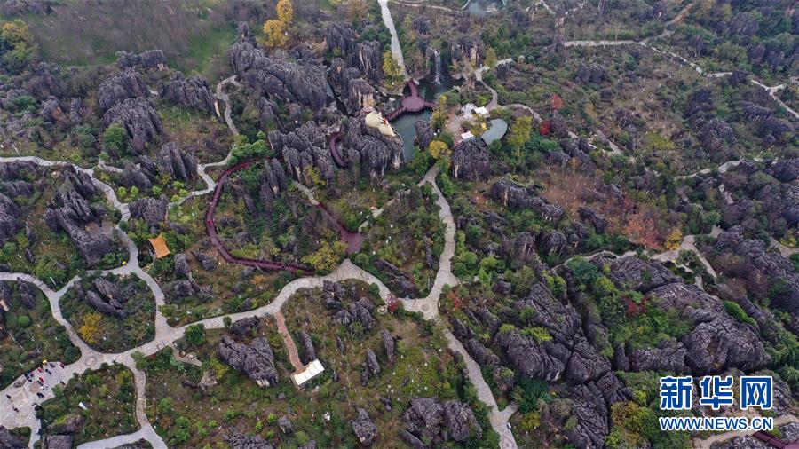 這是云南石林彝族自治縣黑石箐石林景觀(11月28日無人機(jī)拍攝)。新華社記者胡超攝