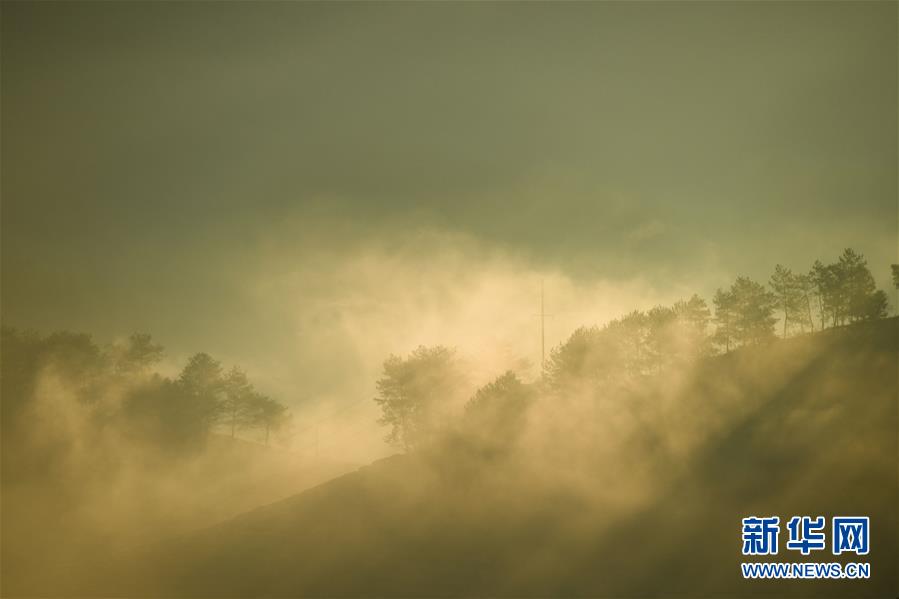 福建省武夷山的茶山云霧繚繞,在朝陽照射下如夢如幻(11月17日攝)。新華社記者宋為偉攝