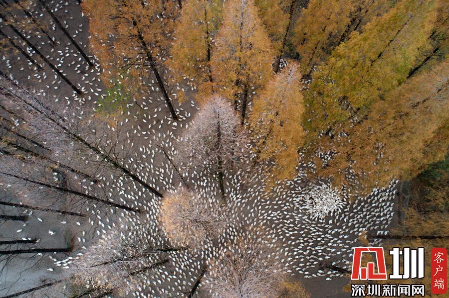 江蘇泗洪5000多只鵝林場吃食,場面壯觀。
