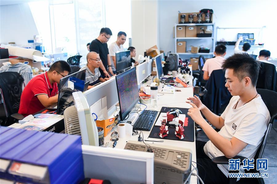 在深圳前海深港青年夢(mèng)工場(chǎng),創(chuàng)業(yè)者招俊?。ㄇ坝遥┡c團(tuán)隊(duì)成員在辦公室工作(2018年10月25日攝)。 新華社記者 毛思倩 攝