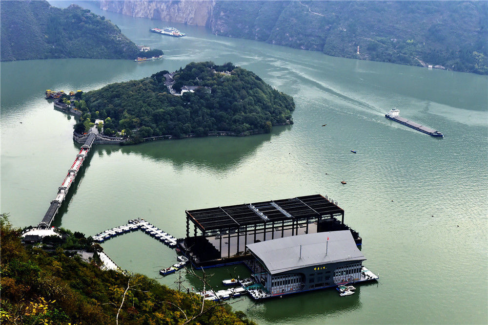 2019年11月3日,重慶,各種上行船舶正在通過白帝城前方的三峽夔門,蓄水后貨暢其流、往來無阻的水運業(yè)彰顯“黃金水道”的社會效益。