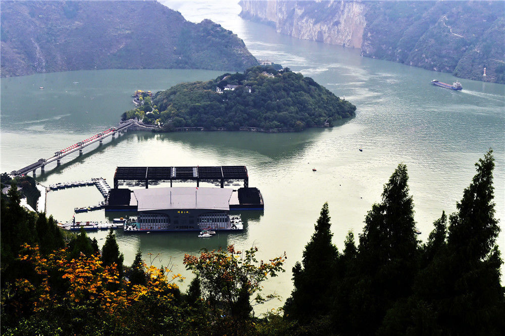 2019年11月2日,重慶,俯瞰三峽蓄水之后的“白帝城孤島”全貌。
