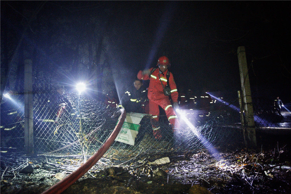 2019年12月7日凌晨一時(shí)多,廣東佛山,來(lái)自英德東華鎮(zhèn)的消防員們摸黑上山作業(yè)。經(jīng)過(guò)大約一個(gè)小時(shí)的奮戰(zhàn)后,山頭明火得到有效控制。