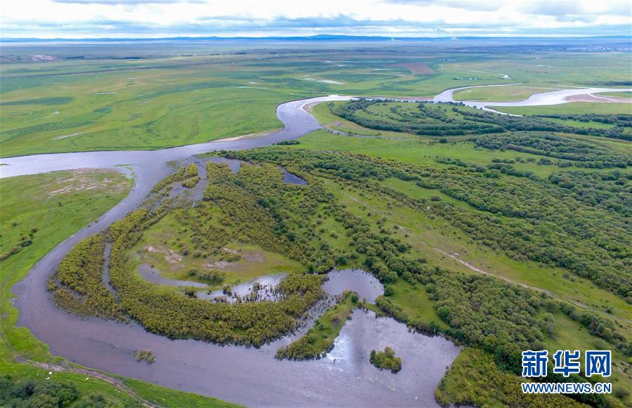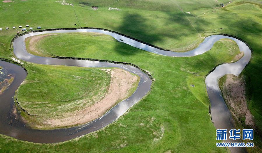 8月29日無人機(jī)拍攝的內(nèi)蒙古呼倫貝爾市陳巴爾虎旗境內(nèi)的莫日格勒河局部。新華社記者彭源攝