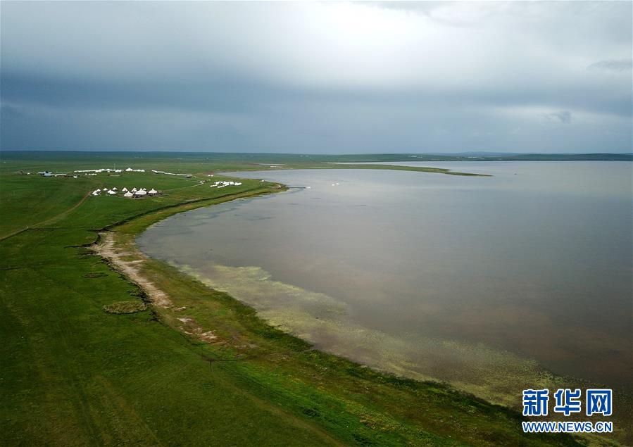 8月27日無人機拍攝的呼倫貝爾草原呼和諾爾湖。新華社記者任軍川攝