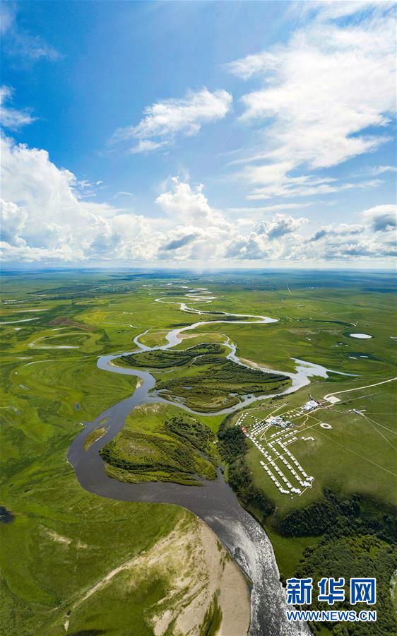 8月26日無人機(jī)拍攝的伊敏河(全景照片)。伊敏河流經(jīng)呼倫貝爾草原。新華社記者沈伯韓攝