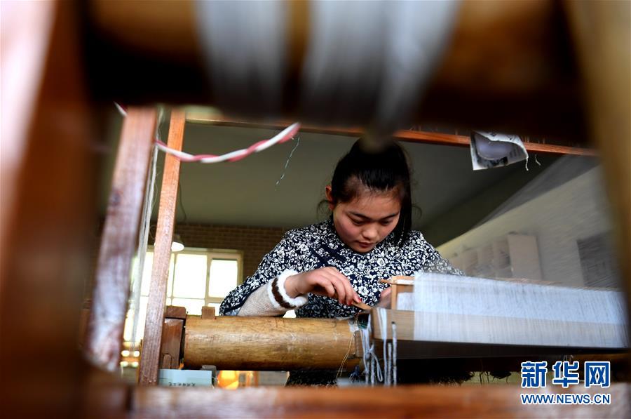 12月14日,在河北定州緙絲傳習(xí)基地,工作人員在制作緙絲。 新華社記者 王曉 攝