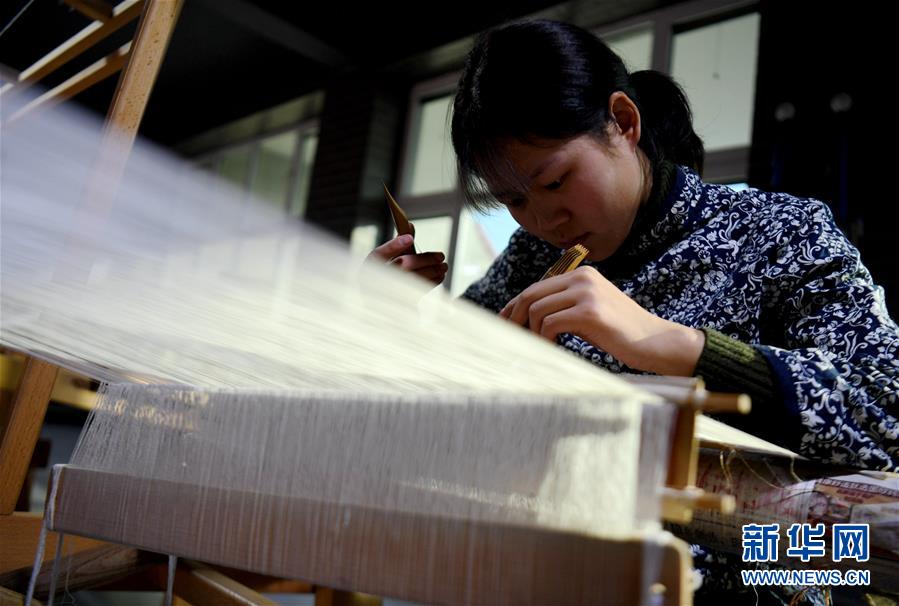 12月14日,在河北定州緙絲傳習(xí)基地,工作人員在制作緙絲。 新華社記者 王曉 攝