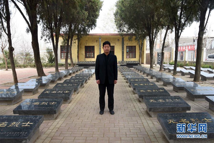 張景憲在張和莊烈士陵園內(nèi)(3月20日攝)。山東省菏澤市經(jīng)濟(jì)開(kāi)發(fā)區(qū)佃戶屯街道辦事處張和莊烈士陵園長(zhǎng)眠著136位在解放戰(zhàn)爭(zhēng)中犧牲的無(wú)名烈士。送英魂回家,讓英魂安息,是退伍軍人張景憲的一顆初心。11年來(lái),他寄出了一千多封信件,在退信、寄信、再退信、再寄信的反復(fù)中,持之以恒地為菏澤戰(zhàn)役中犧牲的136位英烈找“家”。截至目前,已有30位烈士找到了“家”。新華社記者王凱攝
