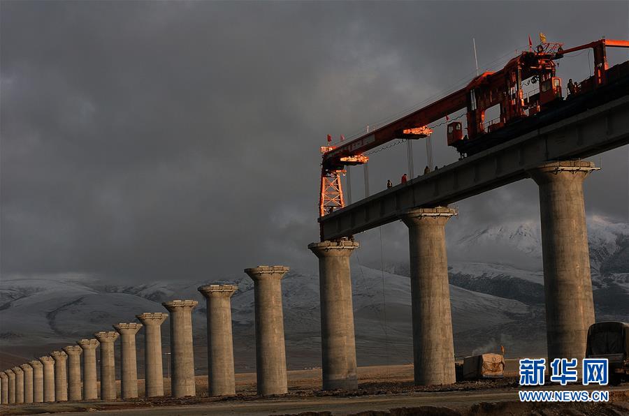 青藏鐵路在施工建設(shè)中(2005年5月15日攝)。新華社記者覺果攝
