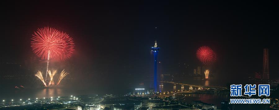 12月22日,煙花在澳門上空綻放。當(dāng)晚,澳門與珠海首次聯(lián)合舉行煙花匯演,慶祝澳門回歸祖國20周年。新華社記者呂小煒攝