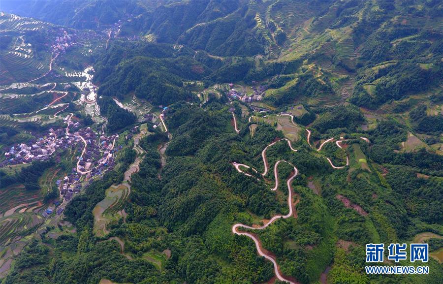 這是融水苗族自治縣桿洞鄉(xiāng)歸江村的村屯公路(6月19日無人機拍攝)。新華社記者黃孝邦攝