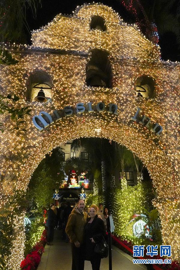 12月29日,人們?cè)诿绹?guó)加利福尼亞州里弗賽德燈光節(jié)上拍照留念。 新華社記者李穎攝