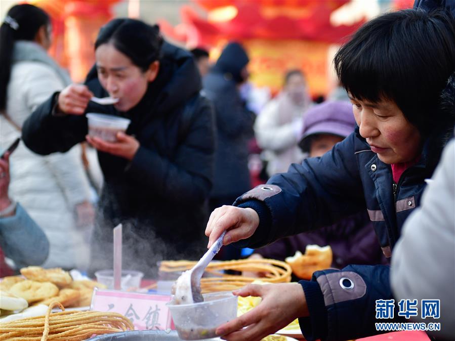 1月2日,市民在青海省海東市平安區(qū)“共品臘八粥”活動現(xiàn)場盛臘八粥。 當(dāng)日是農(nóng)歷臘月初八,中國傳統(tǒng)臘八節(jié)。 新華社記者 張龍 攝