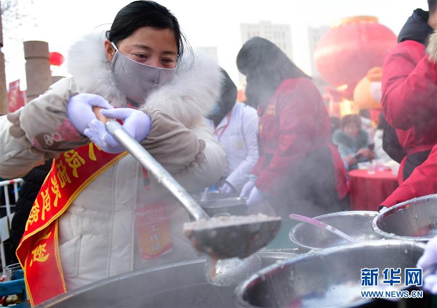 1月2日,工作人員在青海省海東市平安區(qū)“共品臘八粥”活動現場為市民盛粥。 當日是農歷臘月初八,中國傳統(tǒng)臘八節(jié)。 新華社記者 張龍 攝
