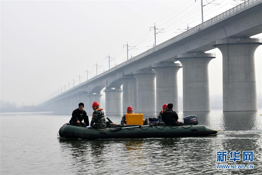1月3日,中國鐵路濟(jì)南局鐵道戰(zhàn)備舟橋處工程人員駕駛船只前往預(yù)定地點(diǎn)。新華社記者 朱崢攝