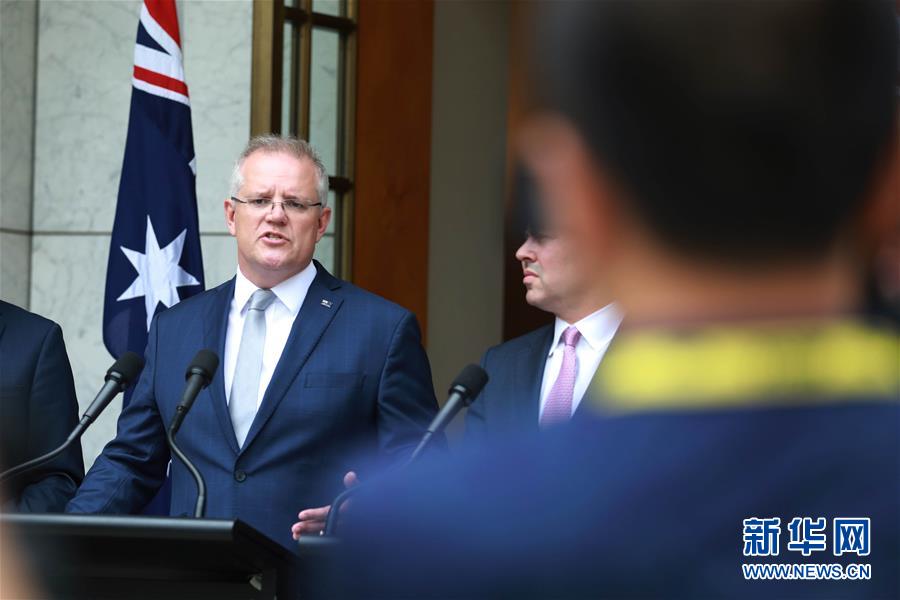 1月6日,在澳大利亞首都堪培拉,澳大利亞總理莫里森(左)在國(guó)會(huì)大廈出席新聞發(fā)布會(huì)。新華社記者白旭攝