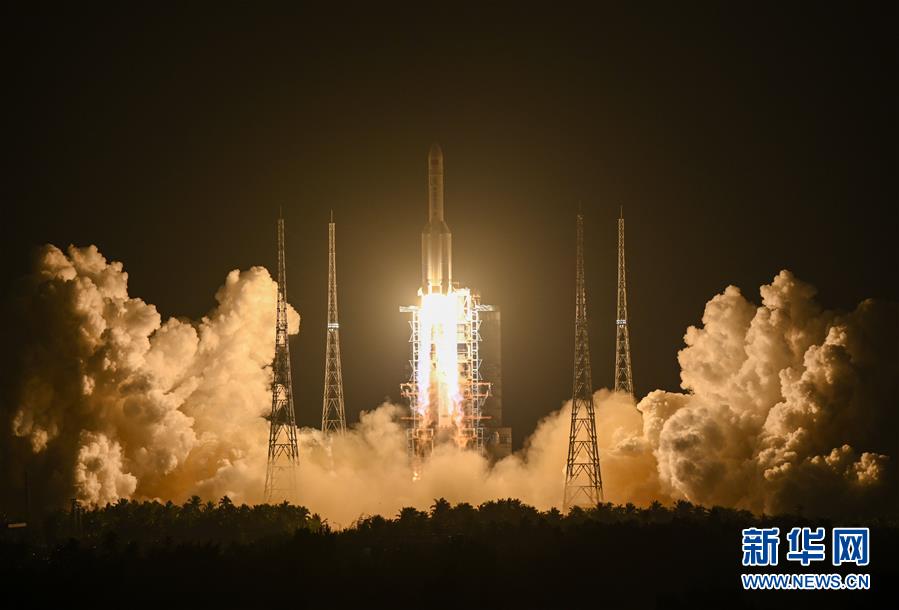 2019年12月27日20時(shí)45分,長征五號遙三運(yùn)載火箭在中國文昌航天發(fā)射場點(diǎn)火升空。 新華社記者陳曄華攝