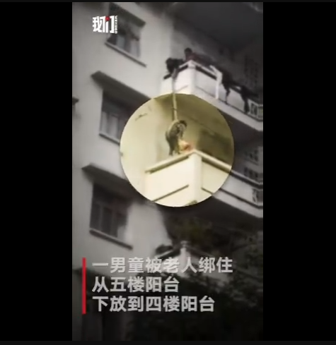 1月5日下午,四川南充市蓬安縣,一奶奶在百順街老百貨公司宿舍樓上,用一根繩子綁著孫子的腰,將其從五樓吊至三樓一窗戶遮雨臺上,只為救一只貓。此舉嚇得周圍鄰居紛紛呼喊:危險!網(wǎng)友:小孩子不懂事,老人是糊涂了嗎?到底誰是親的?