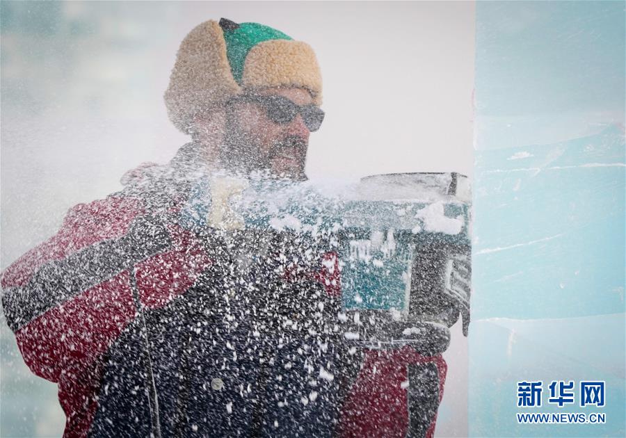 1月6日,參賽者在創(chuàng)作冰雕。新華社記者王松攝