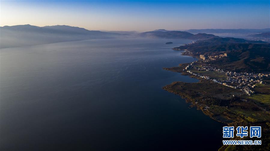 空中俯瞰撫仙湖(無(wú)人機(jī)照片,1月10日攝)。 新華社記者 江文耀 攝