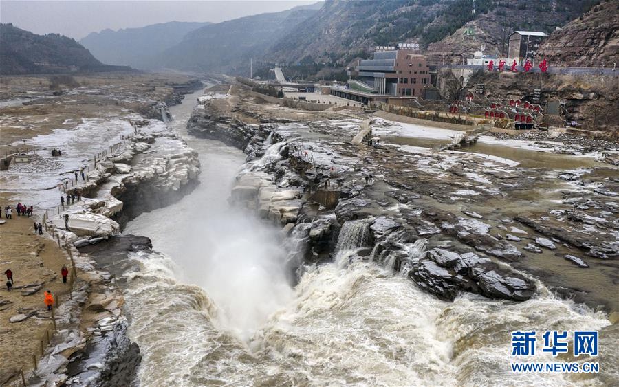 12月14日,游人在壺口瀑布景區(qū)游玩(無人機(jī)拍攝)。位于秦晉大峽谷的黃河壺口瀑布,冬日水量較夏日雖然有所減少,但驚天動(dòng)地的濤聲依舊,周圍石壁上的冰掛與河中的浪濤構(gòu)成一幅獨(dú)特的北國風(fēng)光圖,吸引游客前來觀賞。新華社記者陶明攝