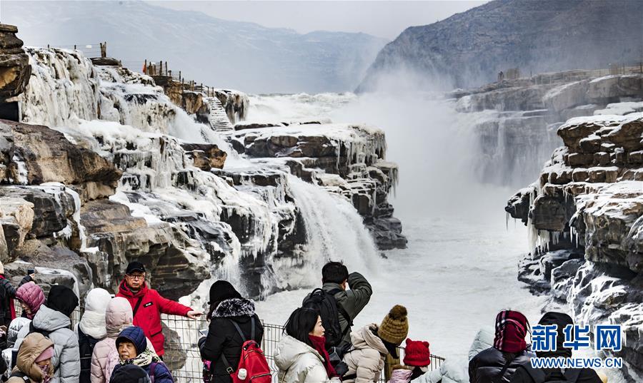 1月12日,游人在陜西黃河壺口瀑布景區(qū)內(nèi)游覽。新華社記者陶明攝