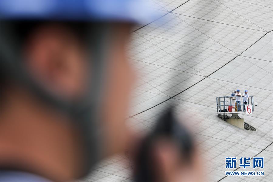 8月28日,工作人員在“中國天眼”內(nèi)進行檢修。新華社記者歐東衢攝