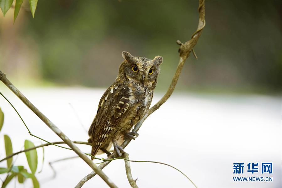 這是陳志高在保護(hù)區(qū)內(nèi)拍攝的紅角鸮(2017年3月27日攝)。新華社發(fā)(陳志高攝)