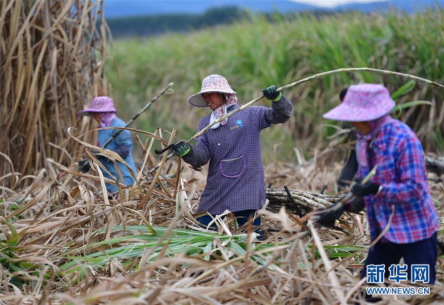 在鹿寨縣鹿寨鎮(zhèn)新村村,村民在砍收甘蔗(1月11日攝)。新華社記者黃孝邦攝
