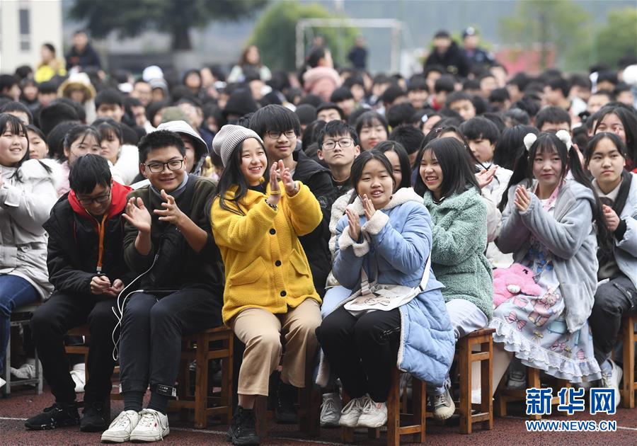 1月15日,師生們?cè)谟^看慰問演出。 當(dāng)日,“我們的中國夢(mèng)”——文化進(jìn)萬家中央歌劇院文藝小分隊(duì)來到重慶市石柱土家族自治縣第一職業(yè)學(xué)校進(jìn)行慰問演出,為學(xué)校的三千多名師生帶來了一場(chǎng)精彩的音樂大餐。 新華社記者 王全超 攝