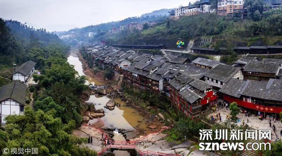 深圳新聞網(wǎng)訊2019年1月26日,重慶中山古鎮(zhèn),880桌“千米長宴”5萬人共品年味。880多張席桌在老街屋檐下一字擺開,“千米長宴”正式開席。