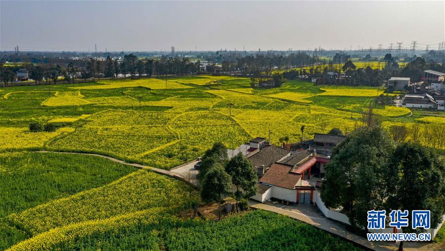2月25日在四川省崇州市農(nóng)業(yè)產(chǎn)業(yè)功能區(qū)拍攝的油菜花田(無人機照片)。 初春時節(jié),正值農(nóng)時。成都平原西部的大邑、崇州等縣市油菜長勢良好,一片生機盎然的景象。 新華社記者 王曦 攝