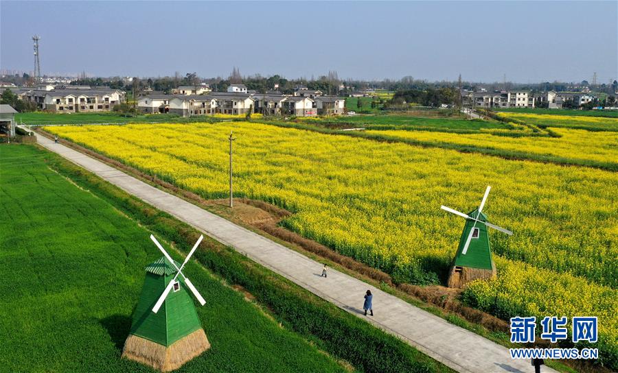 2月25日在四川省崇州市農(nóng)業(yè)產(chǎn)業(yè)功能區(qū)拍攝的油菜花田(無人機(jī)照片)。初春時(shí)節(jié),正值農(nóng)時(shí)。成都平原西部的大邑、崇州等縣市油菜長勢良好,一片生機(jī)盎然的景象。新華社記者王曦?cái)z