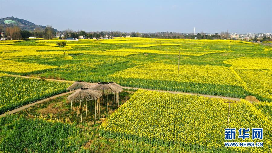 2月25日在四川省崇州市拍攝的油菜花田(無(wú)人機(jī)照片)。新華社記者王曦?cái)z
