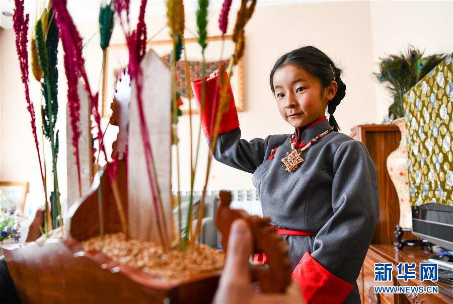 一名身著藏裝的藏族小姑娘在吃切瑪(2月24日攝)。當日是藏歷新年初一,西藏各地群眾歡度藏歷新年。受新冠肺炎疫情影響,當地提倡電話拜年、少出門、不聚集,居家享受新年樂趣。新華社記者晉美多吉攝